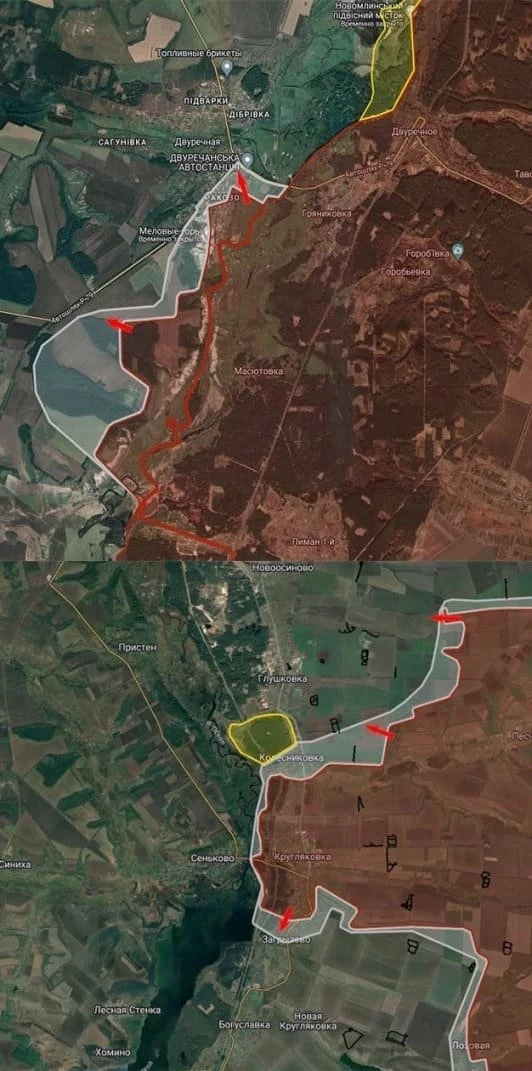 ВС РФ продолжают давить восточнее Глушковки, в направлении Загрызово и севернее Зеленого Гая, имеются тактические успехи.