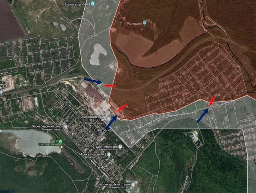 На ЧасовЯрском направлении ВС РФ имеют тактические успехи в мкр. Северный, продолжаются позиционные бои в мкр. Октябрьский и Новый, обстановка без существенных изменений.