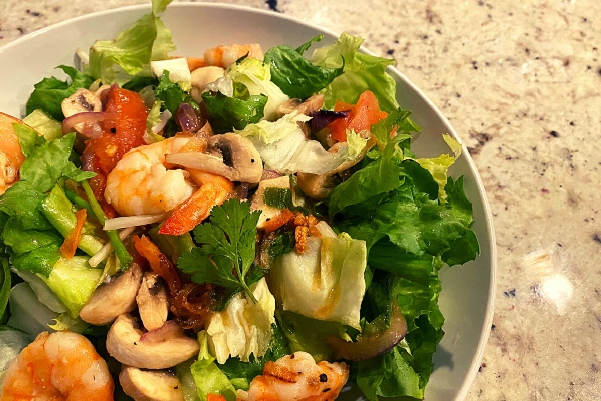 Почему полезен: Креветки – источник белка и йода, овощи – витаминов и минералов.