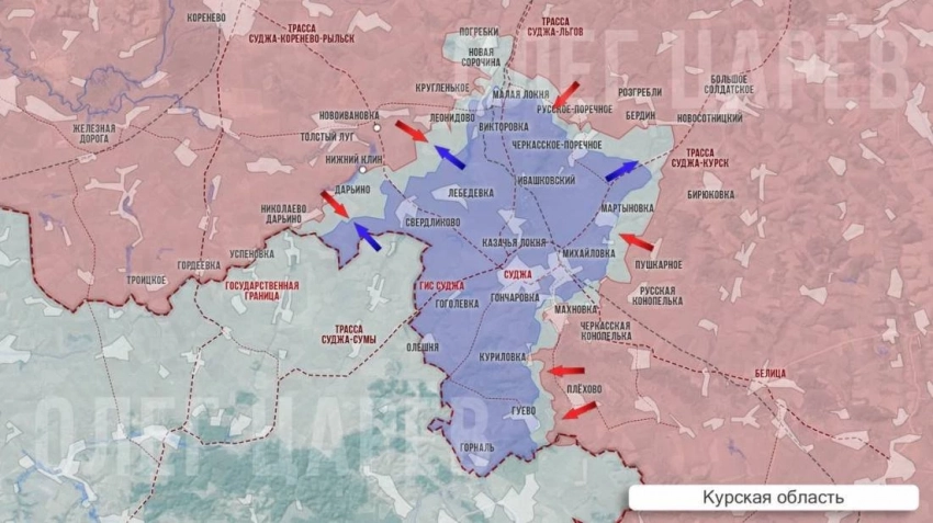 Ожесточённые бои идут в окрестностях Малой Локни и Погребков. Здесь, по некоторым сообщениям, ВС РФ атаковали ВСУ в нескольких направлениях: у Викторовки, в Погребках у железной дороги и у хутора Марьевка. В результате удалось отбить несколько позиций ВСУ в Погребках, придвинуться почти вплотную к Орловке и к Викторовке, сообщает в своём Telegram-канале Олег Царёв.