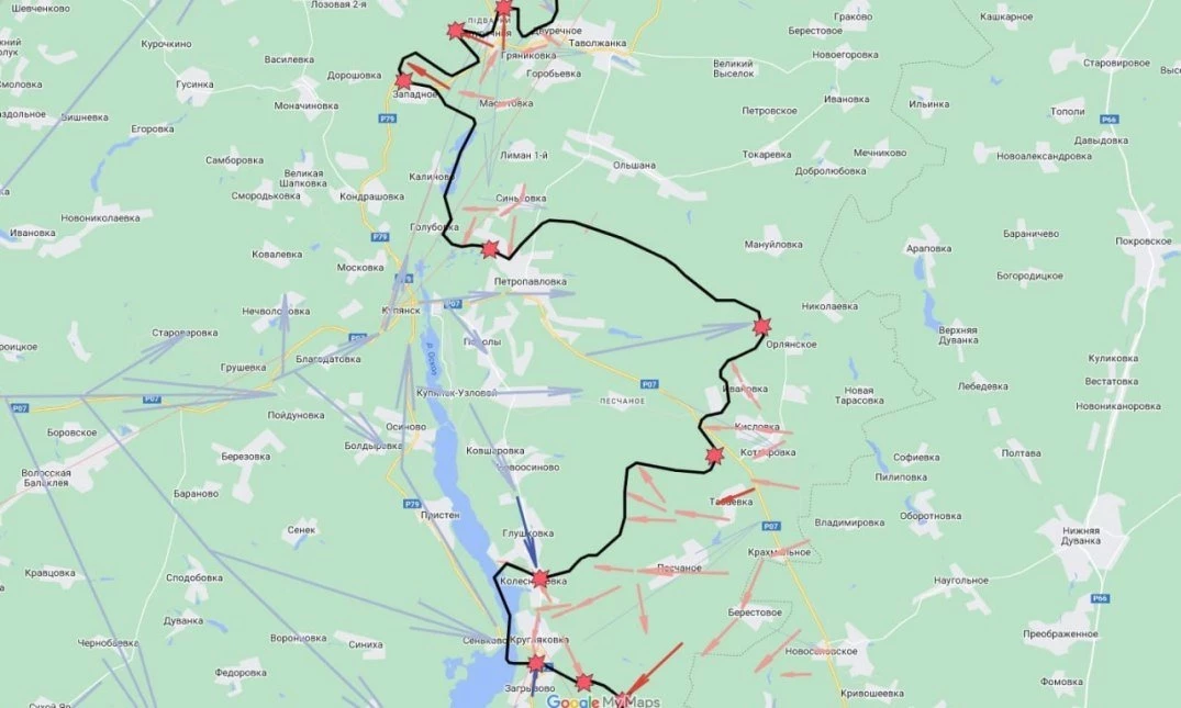 На Купянском направлении ВС РФ продвигаются на юго-востоке от Зелёного Гая. Также наращиваются усилия в районе Двуречной и Западного.