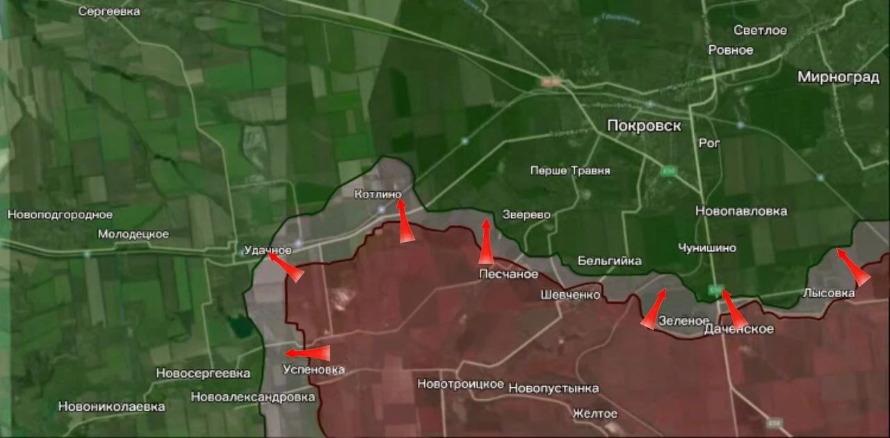 На Покровском направлении продолжаются бои юго-западнее города в районе н.п. Котлино и окрестностях.