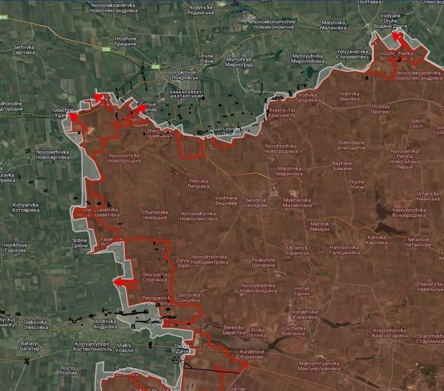 На Покровском направлении российские войска расширили контроль территории в районе Барановки на глубину до 1.2 км.