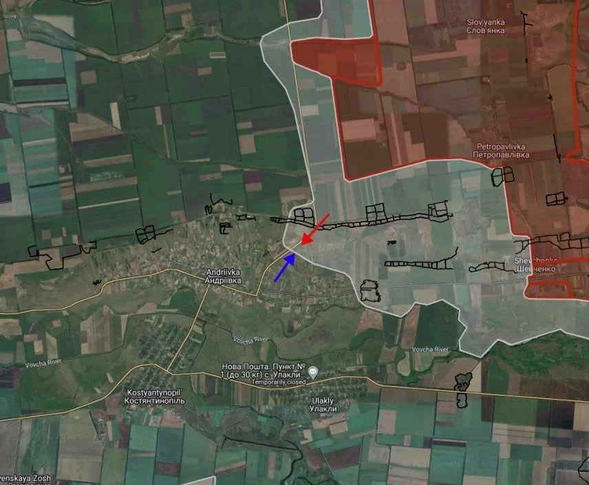 На Константинопольском направлении в Андреевке российские войска ведут штурмовые действия в центральной части населенного пункта.