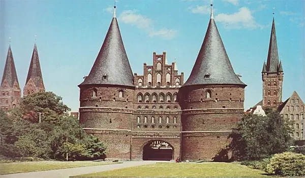 Одной из достопримечательностей ганзейского Любека были Голштинские (Holstein Tor) ворота. Эти большие городские ворота XV века были построены в стиле кирпичной готики по голландскому образцу и с самого начала служили не только для обороны, но и для представительства. Город был полностью окружен городской стеной, через которую с западной стороны можно было пройти только через эти ворота. Любек в основном торговал с Данией, Бельгией, Англией и Русью, что привело его к большому процветанию, чья значимость основывалась на успехе любекских купцов. В 1375 году император Карл IV назвал город одним из пяти «слав империи», титул, который разделяли Венеция, Рим, Пиза и Флоренция. Внутри находится выставка на тему «Сила торговли».