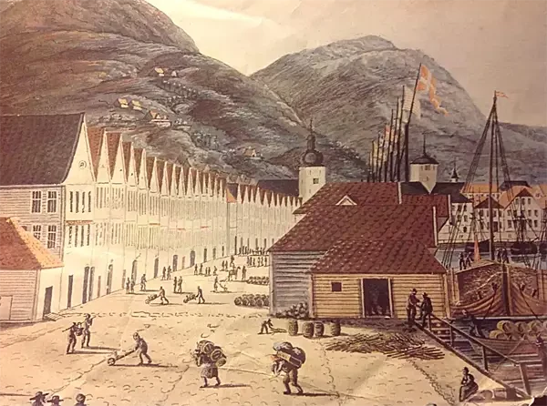 Сразу же после открытия конторы в Бергене началась перестройка местной гавани, вокруг которой выросли административные помещения, где работали писари и торговцы из разных стран, прежде всего из Германии. Склады были забиты самыми необходимыми предметами торговли: рыбой из северной Норвегии и зерном с континентальной Европы.