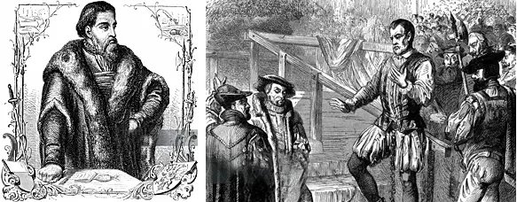 На фото слева: Юрген Вулленвевер. Он был не только немецким купцом, но и занимал должность бургомистра Любека с 1533 по 1535 год. Во время его пребывания у власти город столкнулся с внутренними беспорядками, а его внешнеполитические решения способствовали снижению значения Любека как неформальной столицы Ганзейского союза. Чтобы остановить экономический упадок Любека, Юрген Вулленвевер в 1533 году начал каперскую войну против Нидерландов. В то же время он пытался восстановить влияние Ганзейского союза на датскую корону, но когда поражение Любека стало очевидным, его популярность в городе пошла на убыль. На фото справа: Юрген Вулленвевер незадолго перед казнью. В этот день 24 сентября 1537 года Юрген Вулленвевер был обезглавлен и четвертован в Вольфенбюттеле. В ГДР его изображали как классового борца. Источник: iStock