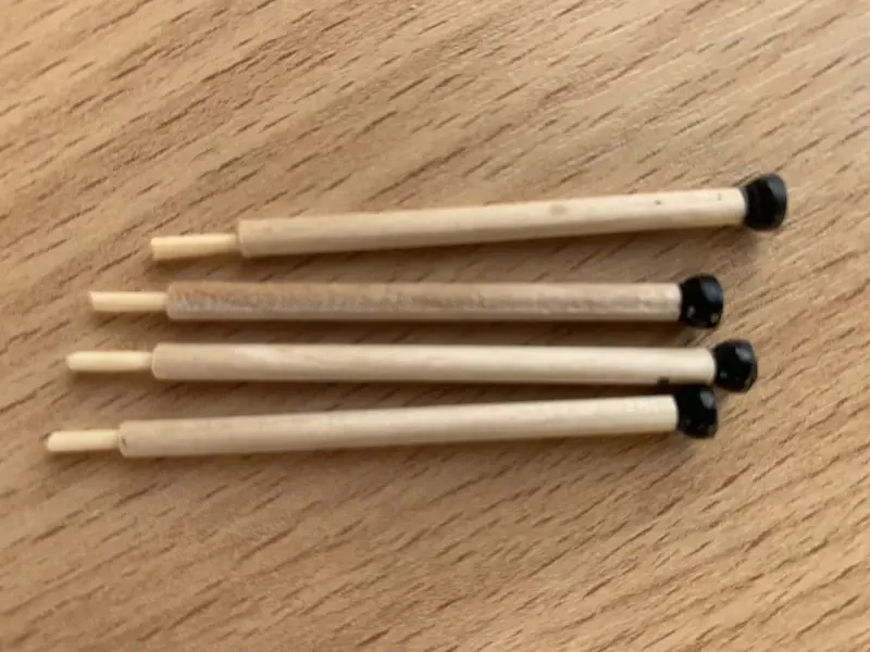 Стойки навеса вытачиваются из подходящих по толщине деревянных брусков, а сами опоры тента можно сделать из сточенных до половины пластмассовых бусинок. Лопасти рулевых весел – из палочек-лопаток для мороженого, веретено весел – китайские зубочистки.