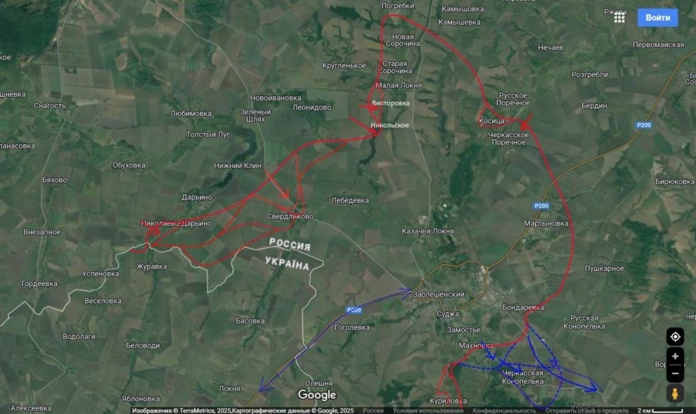 Также сообщается о боевых действиях за населенные пункты Свердликово и Никольское, расположенные северо-западнее Суджи. Российские войска стремятся продвинуться вперед, но встречают сопротивление.