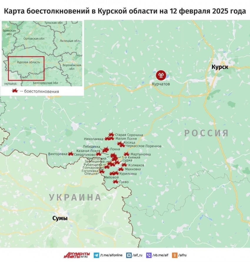 ВС РФ ведут тяжёлые бои в окрестностях Куриловки в Курской области: новая карта боевых действий от 12 февраля 2025 года
