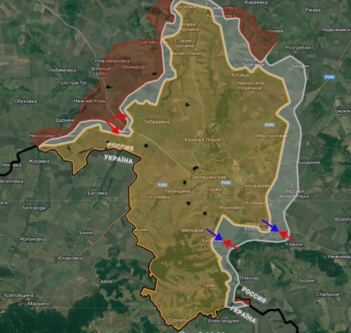 В Курской области российские войска ведут штурмовые действия в районе Свердликово, давят в направлении Никольского. Вместе с этим продолжаются встречные бои в Черкасской Конопельке и в районе Куриловки.
