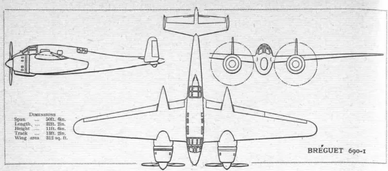 Однако и после официального заказа строительство не продвинулось — в течение почти года (источники называют сроки от 8 до 12 месяцев; истина, видимо, посередине) прототип терпеливо ждал поставки обещанных двигателей Hispano-Suiza 14Ab. Как такое было возможно, не берусь судить, почему Луи Бреге и главный конструктор Жорж Рикар не пытались установить моторы 14М — тоже. Иногда пишут, что эти двигатели были зарезервированы для истребителей P.631, но для H.220 фирмы Hanriot пара моторов все-таки нашлась. Забегая вперед, можно сказать, что именно эта задержка поставила крест на успешной карьере самолета. Лишь к началу 1938 года постройка прототипа была завершена, и 23 марта Breguet Br.690.01 совершил свой первый полет. Заводские испытания прошли успешно, и в июне машина была доставлена на государственные испытания в испытательный центр французских ВВС (CEMA — Centre d'Essais de Matériels Aériens) в Виллакубле.
