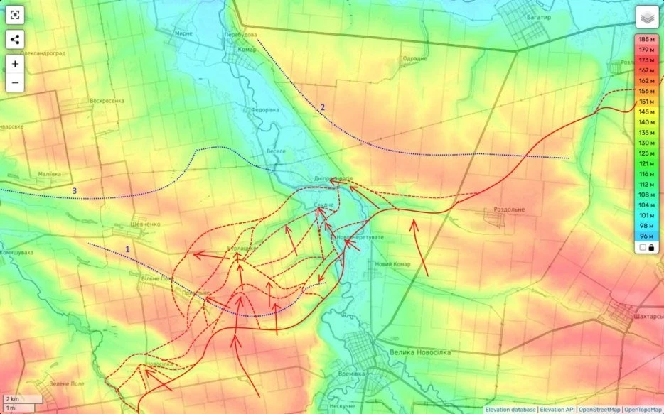 На БольшеНовосёлковском направлении российские войска к сегодняшнему утру закончили освобождение н.п. Бурлацкое и Привольное и устремились в сторону села Шевченко - важного логистического пункта на данном участке фронта.