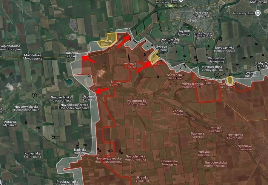 На Покровском направлении продолжаются встречные бои в районе Водяное Второе и Зелёное поле, ВС РФ имеют тактические успехи.