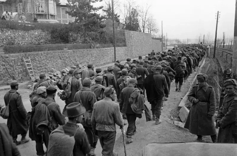 Венгерские солдаты, пленённые частями РККА в районе озера Балатон. Март 1945 г.