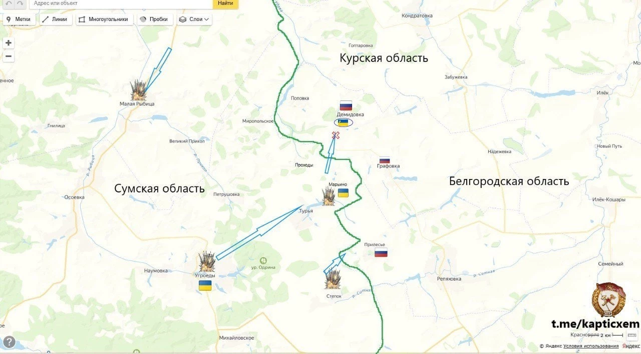 «ВСУ занимают пока у границы выгодные позиции. Несмотря на все трудности, мы давим врага и вытесняем с нашей земли. Также наши войска открыли еще один участок и подошли к Владимировке в Сумской области», - поведал источник.