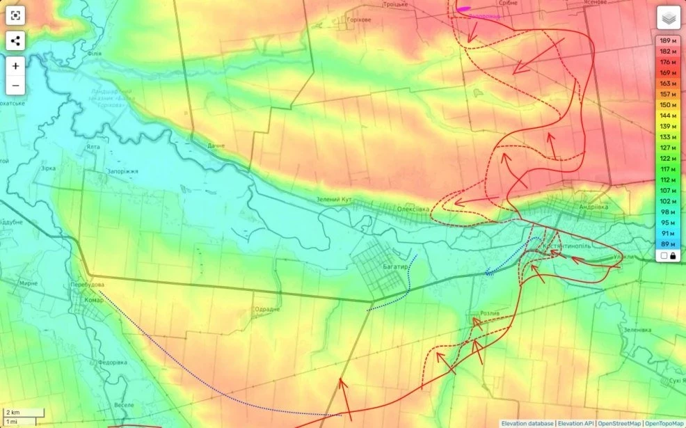 Юрий Подоляка в свежей сводке от 27.03.2025 сообщил о том, что ВС РФ начали штурмовать н.п. Разлив