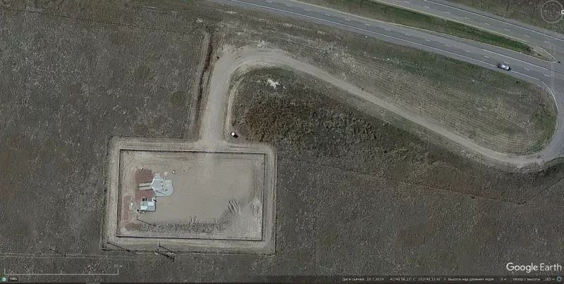 Спутниковый снимок Google Еarth: Центр управления стартового звена «I» 320-й ракетной эскадрильи 90-го ракетного крыла