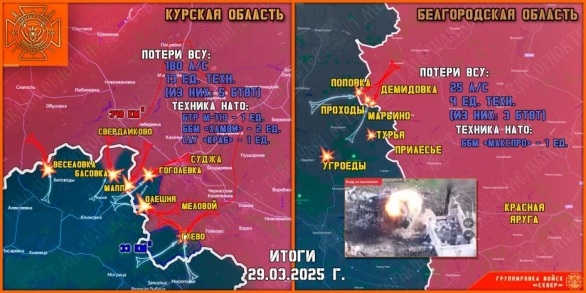 Обстановка Белгородской и Курской областей: новая карта боевых действий на 30.03.2025