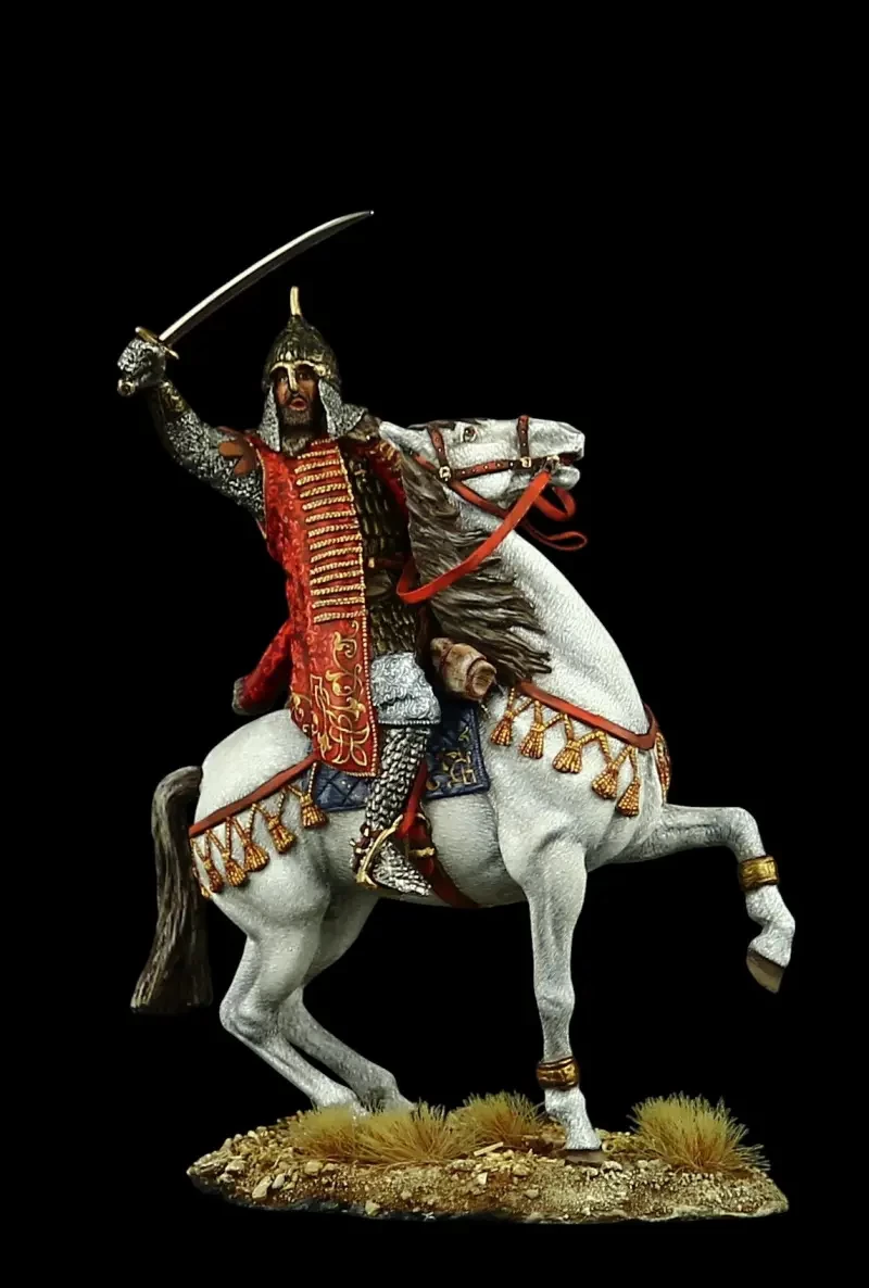 А вот так Александр Невский вполне мог выглядеть на поле брани. Сабли в это время, кстати, уже появились, вот только насколько они были эффективны против кольчуг и чешуйчатых панцирей, сказать сложно. Производители: «Silver Dream Studio» и студия «Серебряная Ладья»