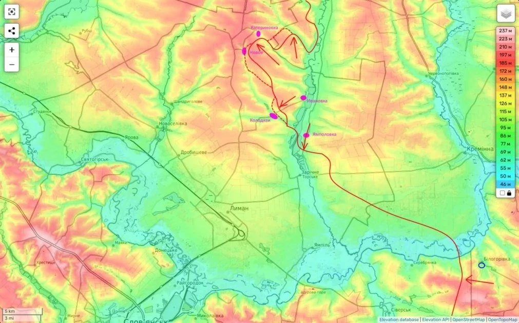 Согласно украинским источникам, ситуация для вооруженных сил Украины на краснолиманском направлении значительно ухудшилась. Сообщается, что украинская армия вынуждена перераспределять свои силы из-за возрастающей угрозы наступления российских войск как в сторону Красного Лимана, так и к Боровой. Последний сценарий может привести к блокированию украинских подразделений, расположенных на восточном берегу Оскольского водохранилища.