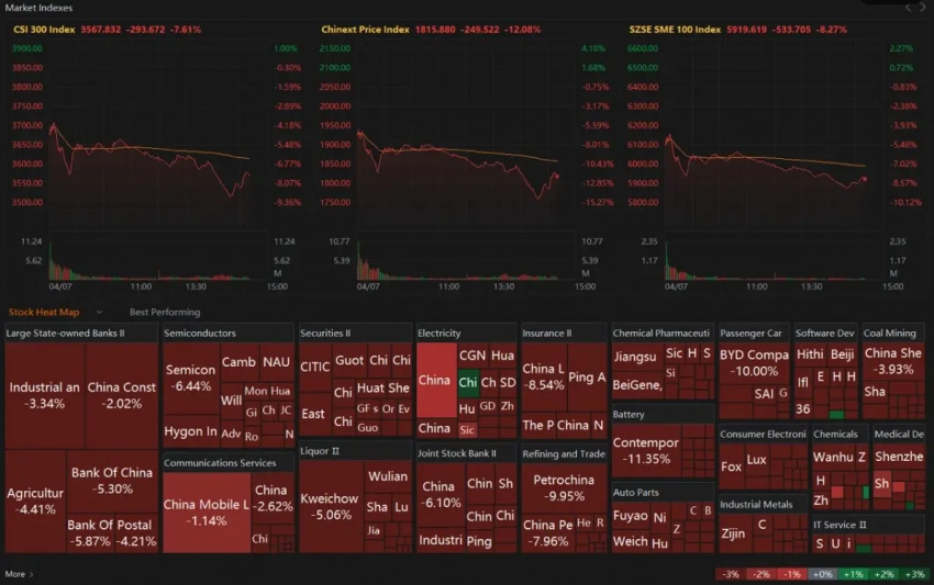 Действительно, введение Дональдом Трампом «взаимных» пошлин на импорт из других стран привело к падению бирж по всему миру: в понедельник фондовый индекс Шанхайской фондовой биржи Shanghai Composite упал на 7,34%, что стало худшим показателем с 2008 года, японский Nikkei 225 в первые полчаса торгов снизился на 8%. В Европе на открытии торгов немецкий индекс DAX 40 обвалился на 10,42%, до 18 489,91 пункта. Британский бенчмарк FTSE 100 снизился на 6,33%, до 7544,83 пункта, а французский CAC 40 на минимуме упал на 7,03%, до 6763,76 пункта. Американские индексы также снижаются.