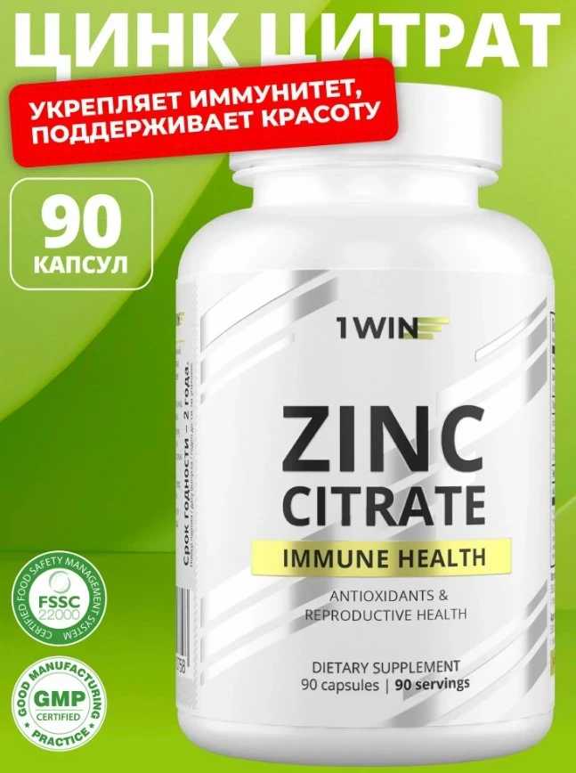 Цитрат цинка 1WIN — один из самых усвояемых форм цинка с биодоступностью 61%, что делает его фаворитом среди нутрицевтиков для поддержки иммунитета, кожи, волос и ногтей. Он мягок для желудка, не вызывает побочек и особенно эффективен в сезон простуд. Цинк в такой форме не просто минерал, а настоящий мультиинструмент: усиливает выработку коллагена, ускоряет заживление кожи, нормализует работу щитовидной железы и защищает клетки от окислительного стресса. Осенью — must-have, весной — страховка. Лидирует в бады для женщин рейтинг за сбалансированность и эффективность.