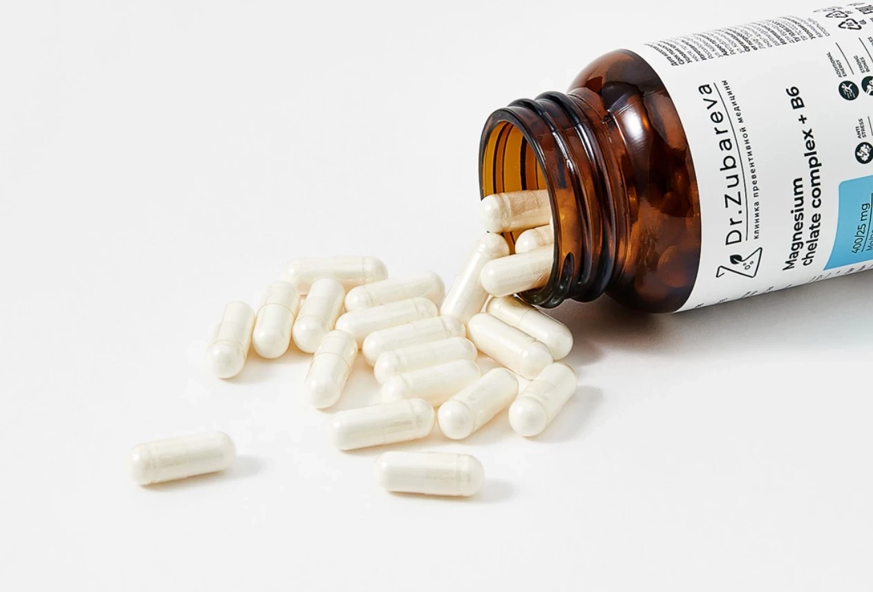 - Магний с витамином B6 — улучшает усвоение магния и поддерживает нервную систему.