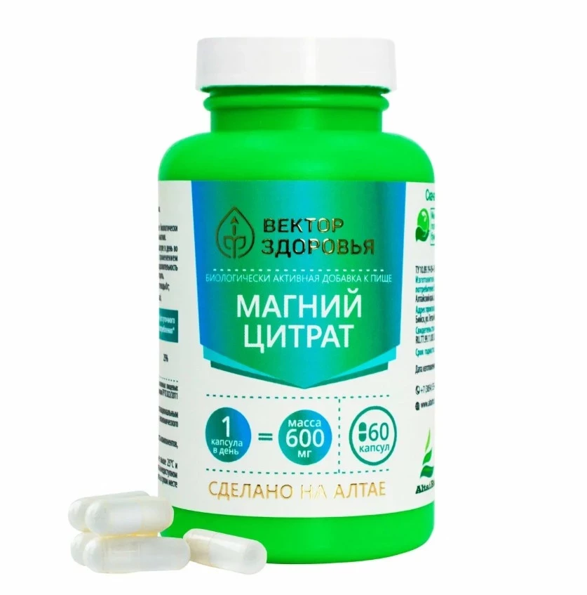 - Органическая форма магния (цитрат) — максимальное усвоение