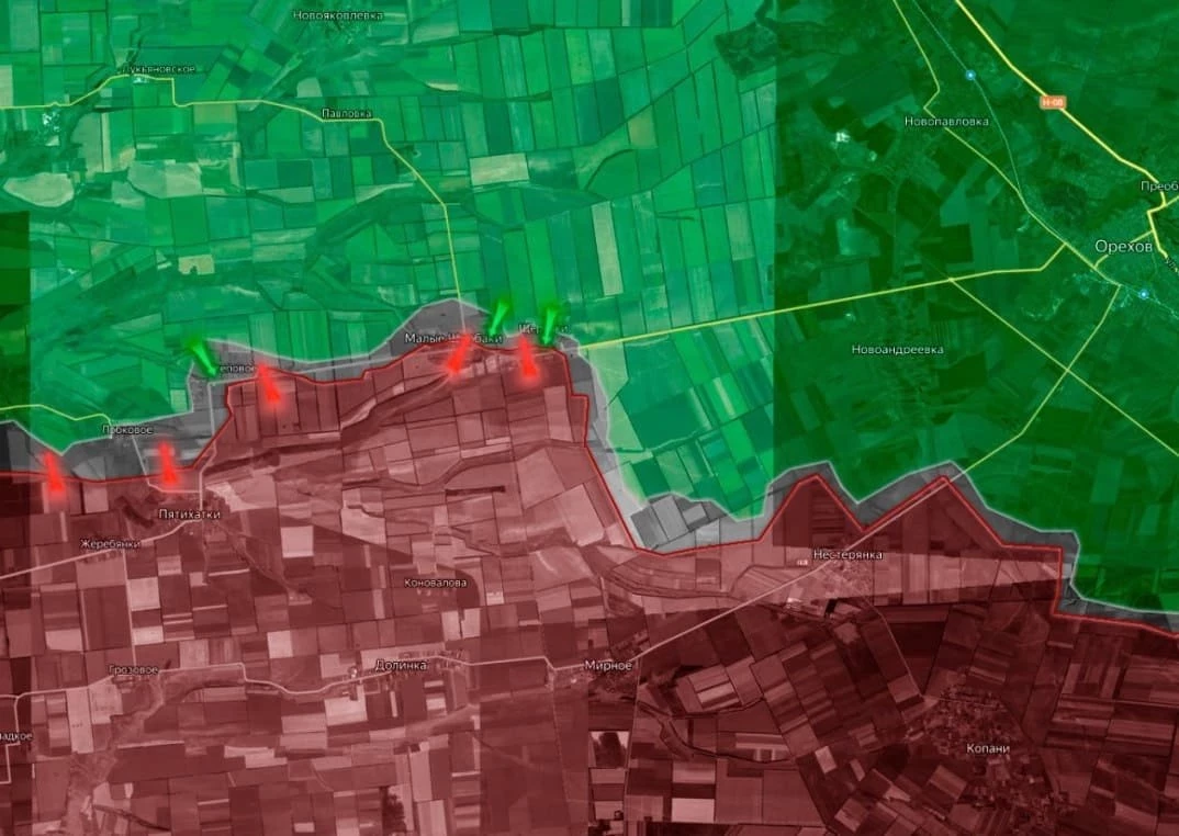 На Запорожском направлении российские войска продолжают атаковать позиции ВСУ на нескольких участках. Однако, продвижения сильно затруднены большим количеством средств дальнего поражения у противника. Существенных изменений в ЛБС за последние сутки не фиксируется, уточняет Telegram-канал Wargonzo.