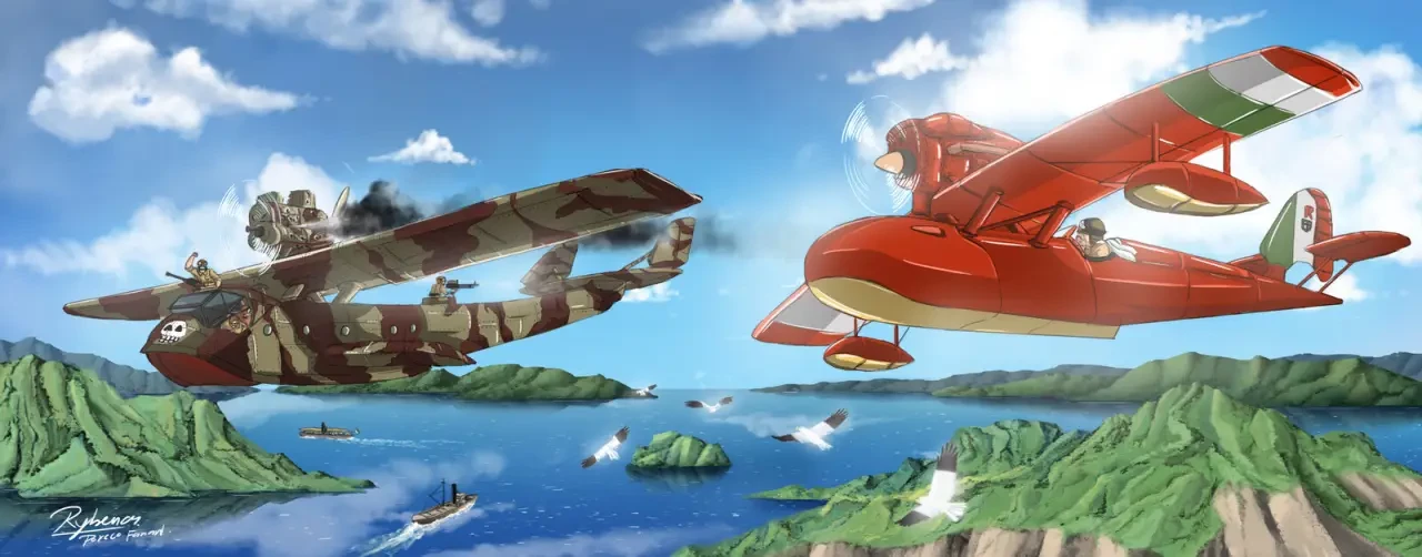 Вот как раз о Порко Россо, Красном Свине, я с вами и поговорю. Да, там шикарный по красоте мульт, как все от мастера Миядзаки (грешен, люблю, да), о том, как этот свин на летающей лодке гнобил как раз воздушных пиратов над Адриатическим морем. И происходило это примерно в 1923-24 годах.