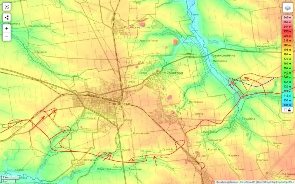 В целом мы видим, что части группировки «Центр» ведут наступление как на Покровскую агломерацию, так и со стороны н.п. Удачное пытаются выйти на границы Денпропетровщины.