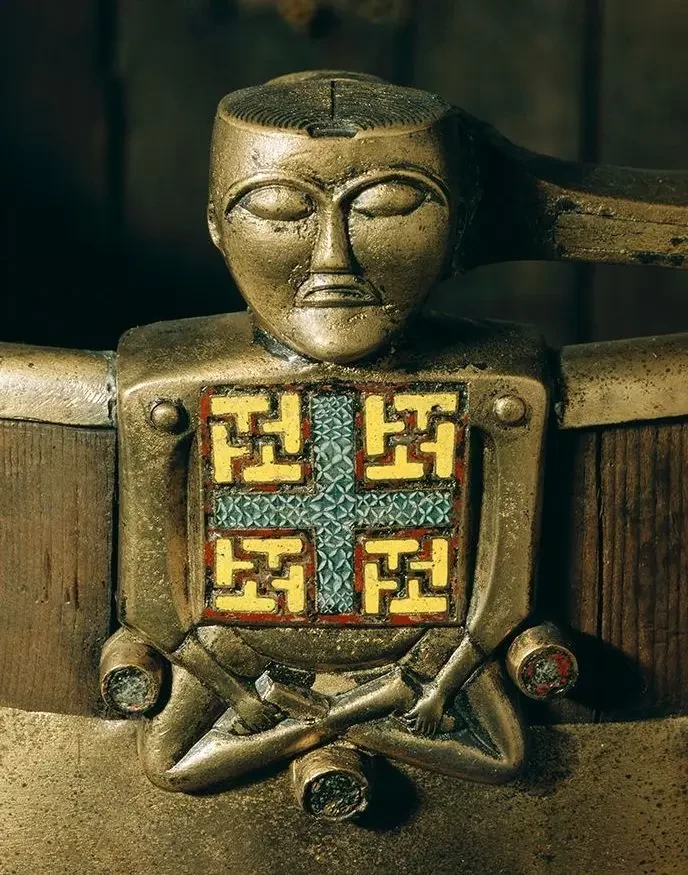 Интересно, что во время раскопок в Осеберге было найдено достаточно много предметов для кухни. Возможно, это были символы власти, потому что предметы эти явно не рядовые. То есть элита демонстрировала своё могущество, устраивая большие пиры и жертвоприношения. Археологи обнаружили два железных горшка разного размера, один с треногой. Железные горшки могли также быть особым символом статуса и власти. Среди найденной утвари были три венчика, которыми что-то взбивали, пять ковшей разного размера, два кухонных топора, железный нож и сито для процеживания молока. Посуда состояла из трёх небольших корыт, нескольких подносов и деревянной миски. Нашли и жернов для помола муки, состоящий из двух круглых камней с отверстием посередине, и с нетронутой деревянной рукояткой. Среди находок было несколько вёдер, включая и очень необычного вида «ведро Будды». Название это происходит от двух фигур, похожих на Будду, на его ручке. Вероятно, оно было привезено из Ирландии и может быть доказательством расширения викингами ареалов грабежа и торговли.
