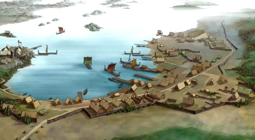 Норвежский Каупанг, находившийся на берегу Викс-фьорда, в окрестностях Ларвика, был в других условиях и вынуждался потреблять рыбу. Дело в том, что Вестфольд, в котором этот Каупанг и находится, представляет собой сочетание моря, скал и леса, в котором свободных земель под распашку и луга очень мало, да и там почва каменистая. На заселенном побережье свободных от леса пространств на глазок примерно 30–40% от общей площади, и это после тысячи лет порубки. В древности леса было больше, свободной земли было меньше, соответственно, много скота там держать не могли, в силу этого обстоятельства продовольствовались океанской сельдью и треской.