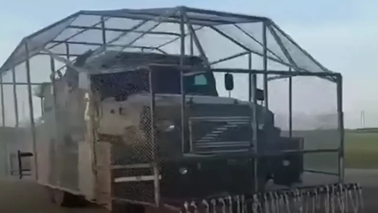 Едва ли по Красной площади проедет монструозный «царь-мангал», обшитый со всех сторон металлическими листами, защищающими от атак дронов, и с противоминным тралом, который он катит впереди.