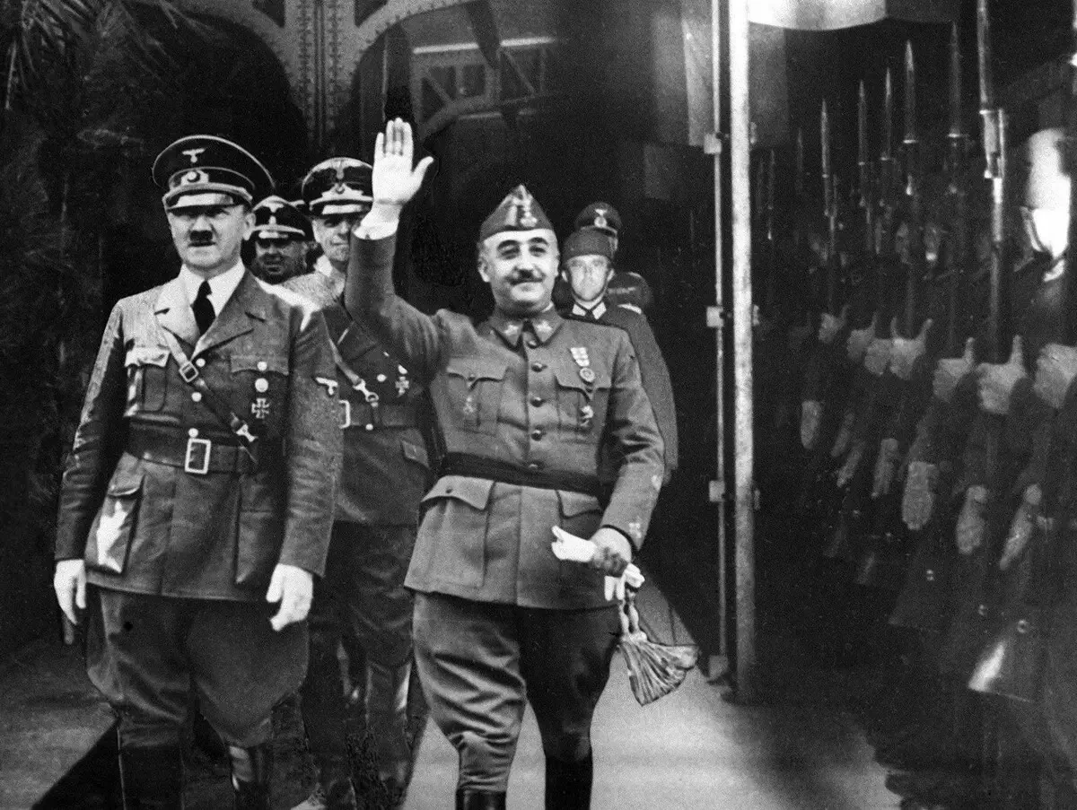 Испанский диктатор Франсиско Франко оказался поумнее своих «коллег», правивших в других, зависимых от Германии странах. Официально в войну против нашей страны он так и не вступил и потому спокойно правил Испанией до своей смерти в ноябре 1975 года. Но и полностью уклониться от участия он не мог, тем более что и в самой Испании имелись люди, страстно желавшие повоевать с коммунистами. И потому каудильо решил отделаться формированием добровольческого подразделения, вошедшего в историю под названием «Голубая дивизия». Создавая её, он преследовал сразу три цели. Во-первых, вроде как отдавал немцам долг за помощь, оказанную ими во время недавней Гражданской войны. Во-вторых, надеялся, что героизм и боевая выучка его солдат заставят Гитлера отказаться от мысли об оккупации Испании – бесноватому фюреру Франко всё же полностью никогда не доверял.