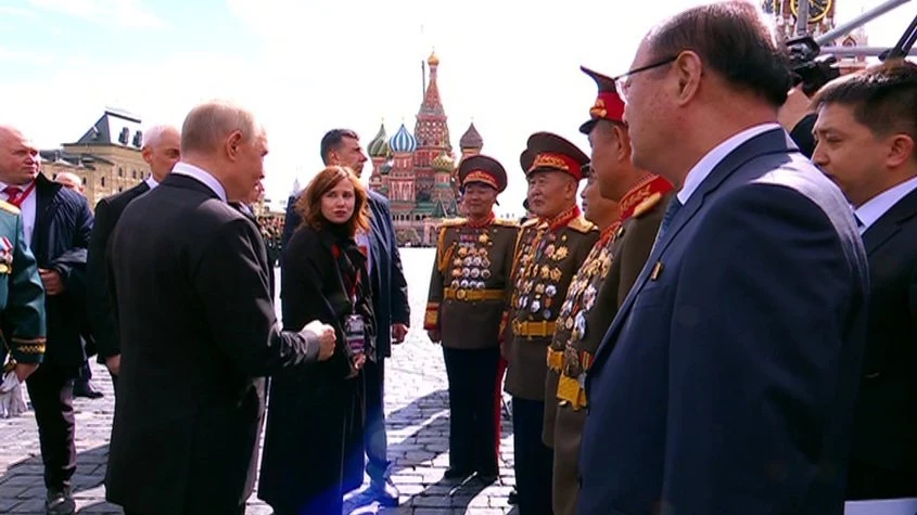 Президент России Владимир Путин после окончания парада Победы на Красной площади пообщался с военнослужащими из КНДР.