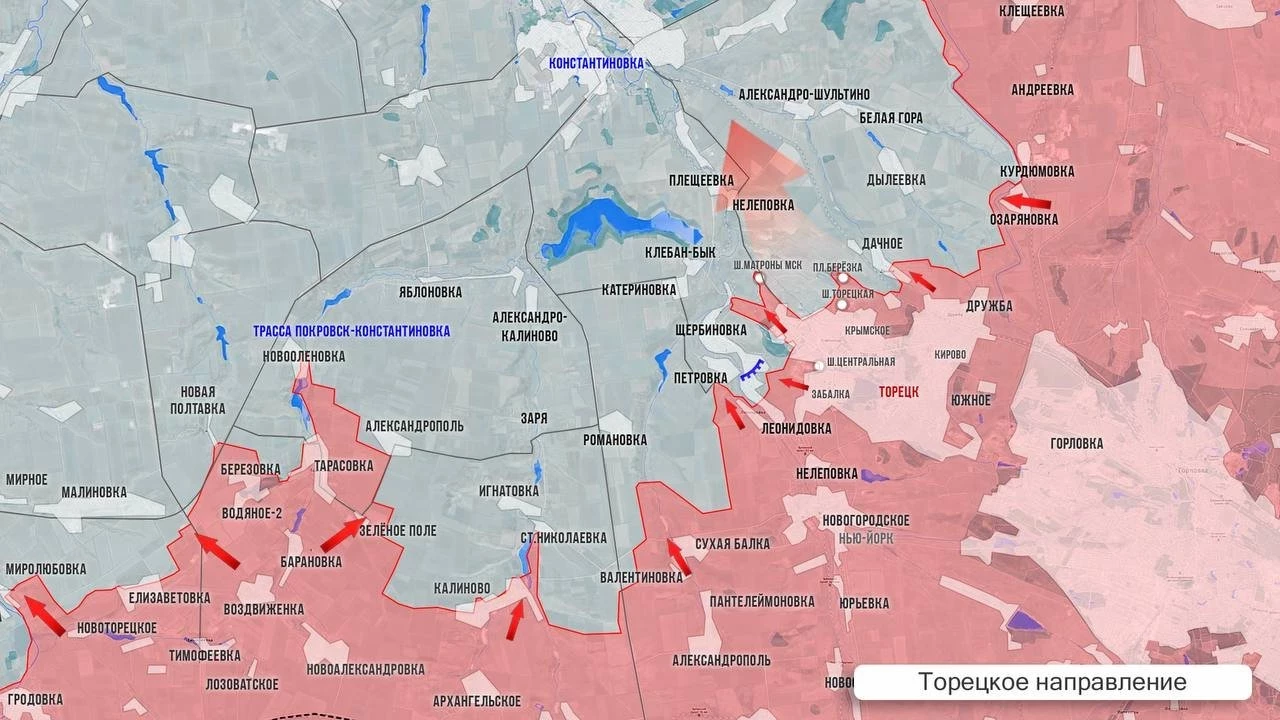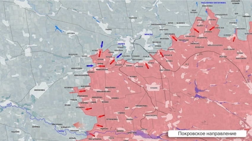 На Покровском фронте ВСУ накатывали на российские позиции в районе Алексеевки, Троицкого, Новоалександровки, Новосергеевки. На восточном охвате Покровска противник работает по нашим позициям в Удачном-Котлино. Наши закрепляются в центральной части посёлка Леонтовичи (Первомайское) севернее Зверево. На западном охвате отбиты контратаки ВСУ в районе Миролюбовки и Елизаветовки. Вчера наши попытались забрать тела погибших товарищей, однако на обратном пути к своим позициям по эвакуационной группе были нанесены удары FPV-дронами.