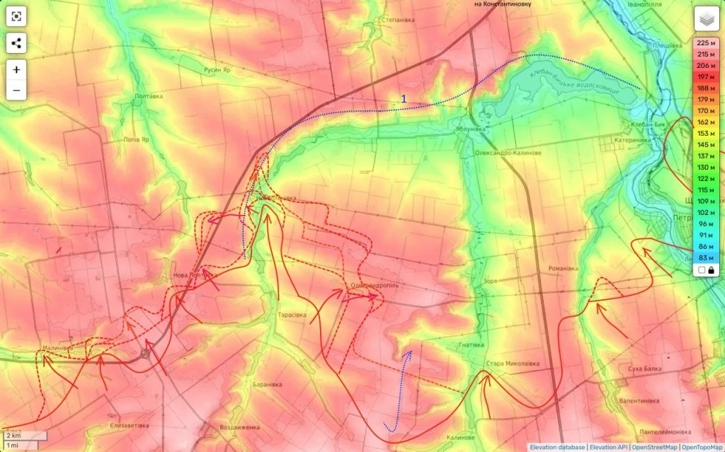 По его словам, наиболее заметный прогресс наблюдается в районе села Новониколаевка, где подразделения российской войсковой группировки "Центр" сначала смогли вытеснить украинские силы из лесополосы, а затем заняли позиции на южной окраине села. Такое продвижение позволяет российским войскам приблизиться к границе с Днепропетровской областью на расстояние менее одного километра. Важно отметить, что за рекой Соленой, которая находится к северу от Новониколаевки, уже располагается украинская территория, что показывает, насколько близки российские силы к линии соприкосновения.