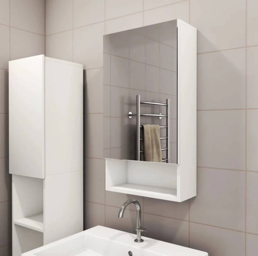 Если вы не знаете, как выбрать мебель для комнаты, чтобы она была стильной, практичной и экономила пространство, обратите внимание на шкаф с зеркалом от Зеркальный Лев. Этот функциональный элемент для ванной совмещает в себе зеркало, подсветку и места для хранения. Встроенная подсветка позволяет вам освещать лицо при нанесении макияжа, не требуя дополнительного освещения. Компактные размеры шкафа обеспечивают удобство размещения даже в небольших ванных комнатах, а полки скрывают все косметические средства и аксессуары.