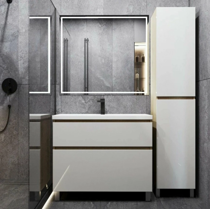 Шкаф-пенал от АКВАМИКС — это удачный пример того, как выбрать качественную мебель для ванной комнаты, не переплачивая за бренд. Модель выполнена из прочного ЛДСП с фасадами из влагостойкого МДФ, покрытыми пленкой Soft-touch, что делает её не только практичной, но и визуально привлекательной. Несмотря на компактные размеры, пенал вмещает пять полок, включая открытую зону для быстрого доступа к нужным вещам. Пластиковые ножки и возможность регулировки высоты придают дополнительное удобство, а отсутствие отверстий под ручки позволяет кастомизировать изделие под любой интерьер.