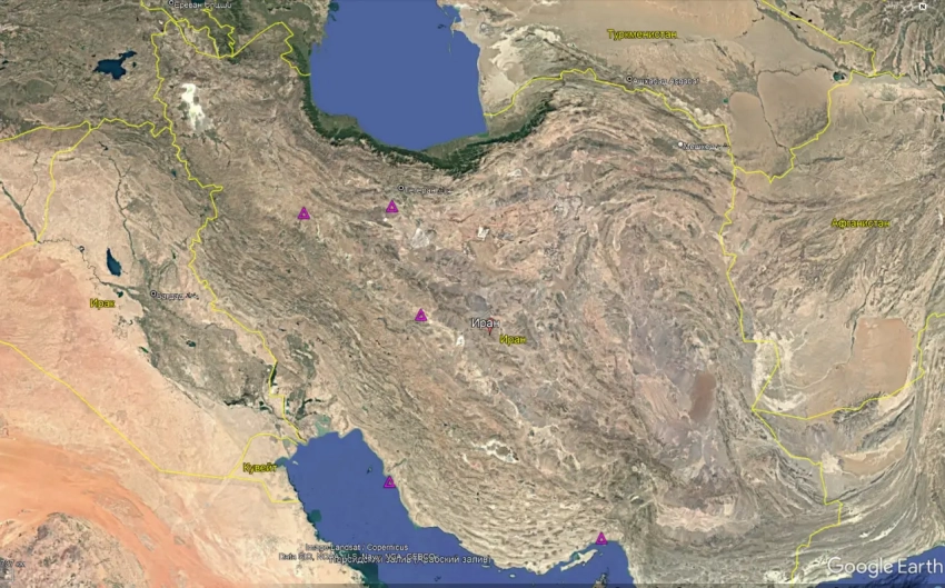 Спутниковый снимок Google Earth: позиция ЗРК С-200ВЭ на южной окраине Тегерана