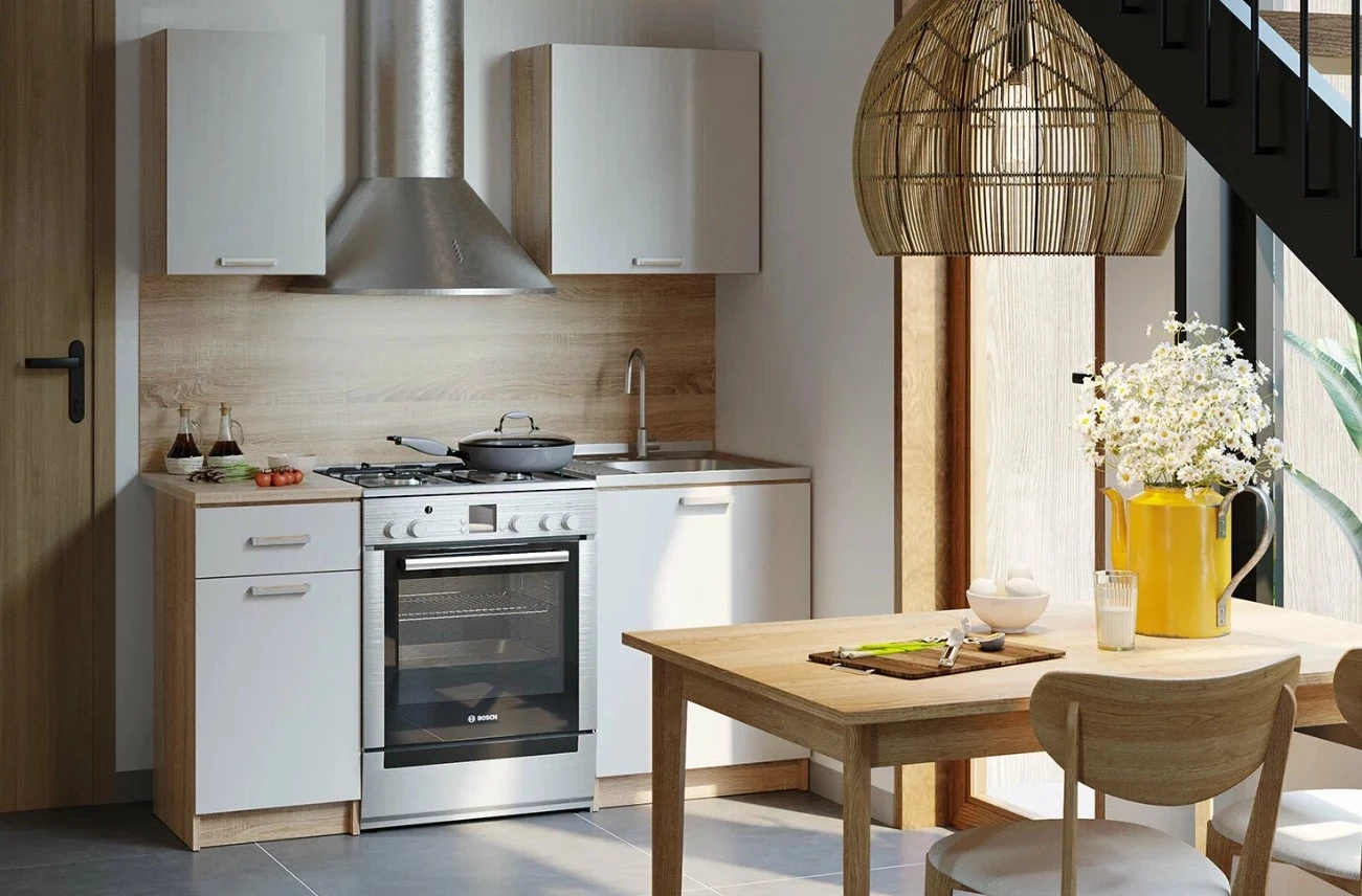 Кухонный гарнитур Ника — это лаконичное решение для небольших помещений, где каждый сантиметр на счету. Его компактность не мешает функциональности: при скромных габаритах он предлагает достаточно мест хранения и гибкость размещения модулей. Благодаря двум оттенкам — дуб сонома и белый — гарнитур впишется в любой интерьер в стиле минимализм. Для тех, кто задумывается, как выбрать мебель для кухни, Ника станет удачным примером сочетания доступной цены, современного дизайна и продуманной эргономики.