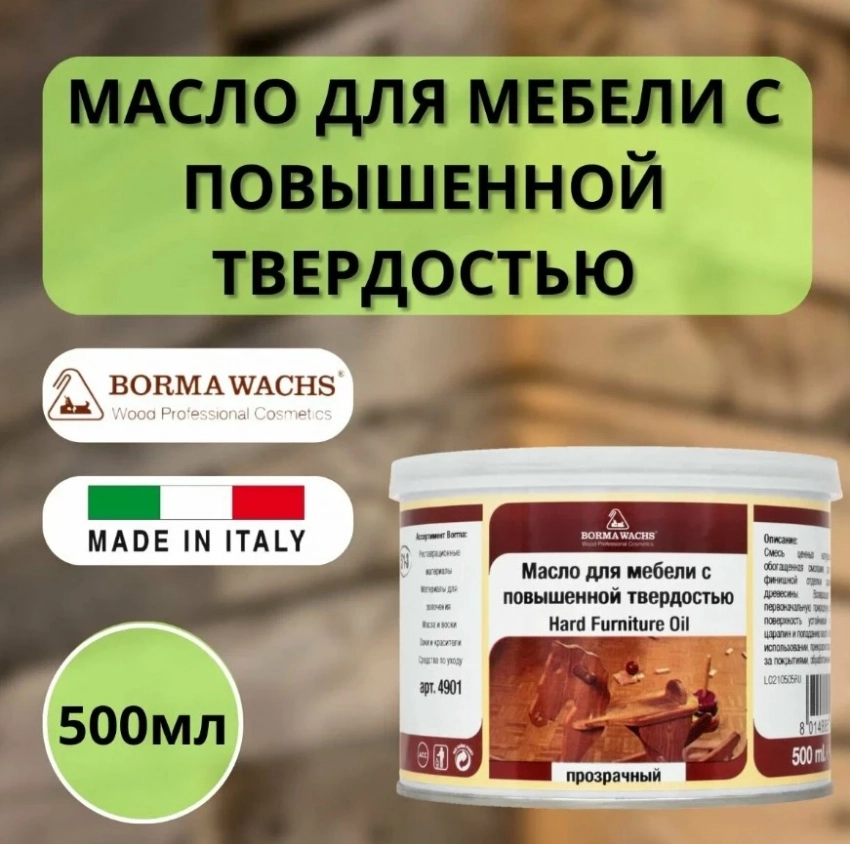 Hardwax furniture oil от Borma Wachs — достойный представитель в масло для мебели рейтинг, особенно если нужна премиальная финишная отделка. Благодаря комбинации натуральных масел, смол и восков, оно не только придаёт дереву шелковисто-матовую глубину, но и эффективно защищает от влаги и механических повреждений. Подходит как для новых, так и для ранее обработанных поверхностей. Идеально ложится на пористые породы, при этом подчёркивает текстуру без лишнего блеска и без изменения тона древесины.