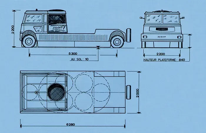 Именовалась она Terraplane BC6 (кто-то потеряли промежуточный индекс BC5) и неё отсутствовал турбореактивный двигатель. Взамен аппарат получил пару бензиновых оппозитных Porsche и один дизель Panhard. Это значительно повысило топливную экономичность BC6, а заодно и сопутствующий шум. Первые два отвечали за нагнетание воздуха под днище, дизель обеспечивал движение. Внешность у аппарата получилась своеобразная – что-то среднее между катером, тепловозов и баржей. Terraplane все также опирался на восьми гибких фартуков, но дополнительно получил по одному колесу спереди и сзади. Они должны были направлять транспортное средство по курсу и обеспечивать торможение конструкции полной массой в три тонны. Заднее колесо было ведущим, крутящий момент на него подавался от дизеля Panhard. Вместе с фирменной системой Бертане с отклоняемыми фартуками, это обеспечивало уверенную тягу. На стоянке при неработающем двигателе BC6 опирался на четыре колеса от гипертрофированной тележки из супермаркета. Кабина экипажа больше походила на рубку, но защищала от ветра и осадков. Аппарат появился на свет в 1963 году, мог ходить (или летать?) автономно до 200 км с грузом массой в 1400 кг. Очень неплохо, если учесть, что снаряженная масса BC6 составляла 1600 кг. На суше машина делала 70 км/ч, на воде – 25 км/ч.