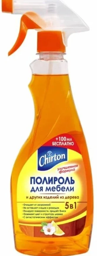 Полироль для мебели Chirton уверенно занимает место в «полироль для мебели с воском рейтинг лучших», благодаря своей способности бережно и эффективно очищать деревянные поверхности от пыли, жира и следов рук. Средство освежает цвет, придаёт глубокий блеск и создаёт защитную микропленку, препятствующую прилипанию пыли и высыханию древесины. Не содержит аммиак, не требует смывания и обладает приятным свежим ароматом, что делает уход за мебелью простым и комфортным, а результат долговечным.