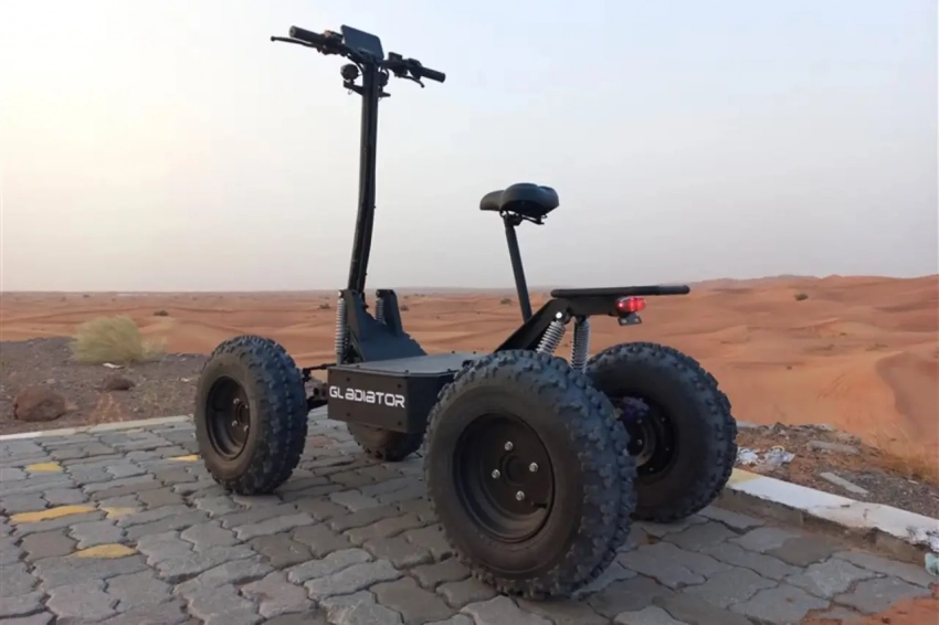Концепт полноприводного электросамоката-квадроцикла 4X4 Gladiator, оснащённый литий-железо-фосфатной пожаро-взрывобезопасной АКБ 60 В / 2,4 кВт⋅ч с запасом хода до 100 км