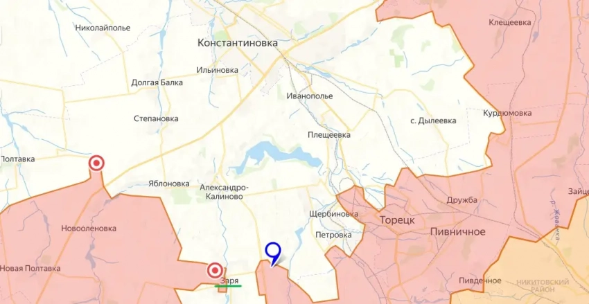 Поселок Заря расположен на Дружковском направлении. Первые сообщения о его освобождении бойцами наших штурмовых подразделений стали поступать вчера. Украинские подразделения отступили на восток за реку. Российские военные берут под контроль пути снабжения и отхода противника в сторону Александро-Калиново.