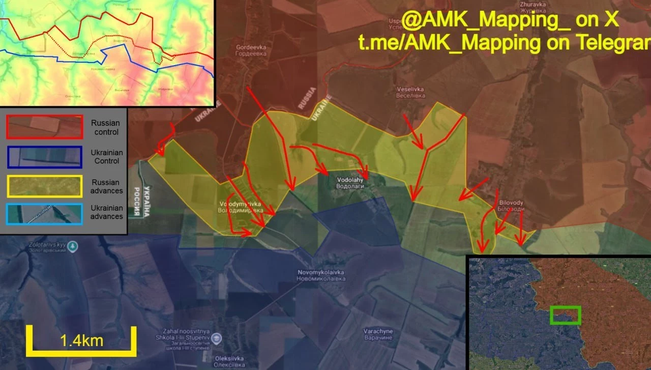 Наши подразделения ВДВ, мотострелков и морской пехоты продолжают успешные действия на данном участке фронта, продвинувшись в Водолагах, Юнаковке, а также в окрестностях населенных пунктов и приграничных лесополосах.