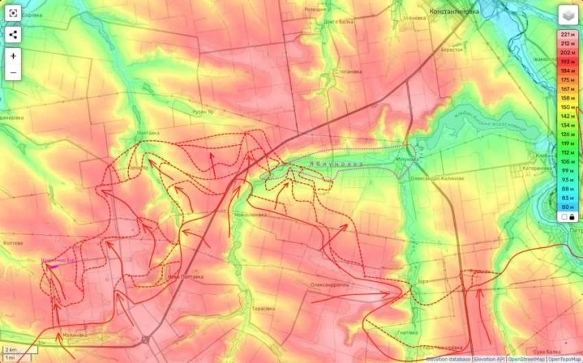 Российская армия продолжает давить, стремясь окружить Константиновку. Украинские войска пытаются держаться, но вынуждены отступать.
